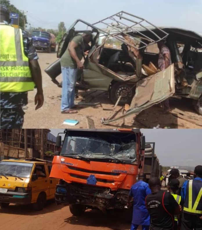 Meanwhile, preliminary investigation reveals that the commercial bus, with registration number XL 884 ENU, driven by one Simon Umeh and loaded with five passengers, was headed to New Market Enugu when it had a head-on collision with the truck coming from the opposite direction while attempting to overtake a smoky vehicle ahead.