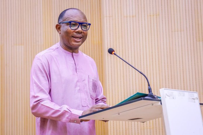 Representative of DG NITDA, Kashifu Inuwa Abdullahi, Dr Aristotle Onumo, delivering DG speech at the Principal Stakeholders Forum 2025 themed: “Aligning Perspectives, Building Synergies: Forging a Unified IT Ecosystem for National Growth” which held on Tuesday, 30TH Sept 2025