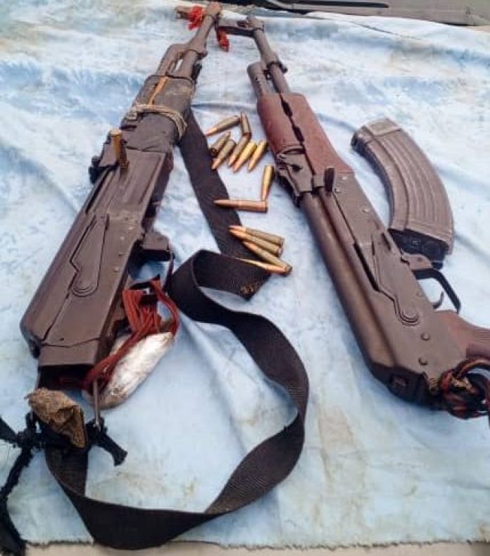 “During the search of the vehicle, two AK47 riffles with thirteen (13) rounds of 7.62mm live ammunition were recovered concealed inside the vehicle engine compartment and in the trunk of the car. Exhibits in custody and investigation have commenced as effort is being made to arrest the fleeing members of the gang.